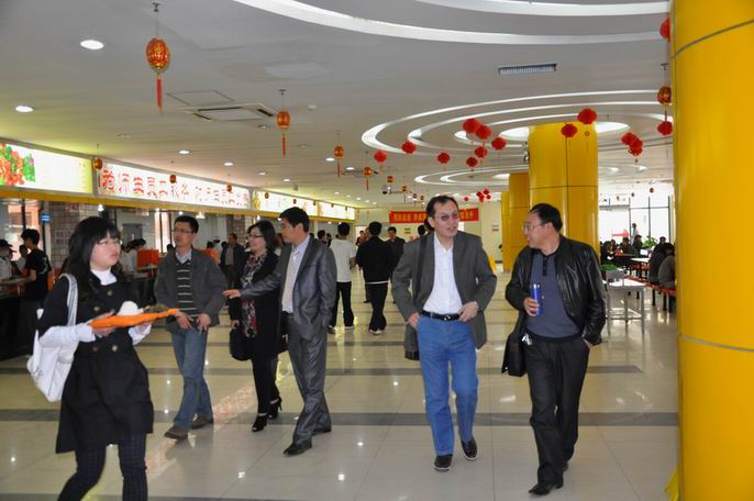 集团副总经理毛大鹏主持座谈会,集团总经理张惠忠向来访的扬州大学各位领导的到来表示热烈的欢迎。首先饮食中心主任赖伟采用图文并茂的PPT向扬州大学一行介绍了我校饮食中心概况以及“文明食堂”先进学校创建工作。然后集团副总经理毛大鹏就我校米面油等大宗物资采购的形式及主要渠道、鲜活原材料采购方式及内控制度、学生共建方面的主要做法、自主经营食堂员工绩效绩效考核及发放办法等问题向扬大的各位领导进行了汇报。最后双方就上述问题进行了交流和讨论,现场气氛愉快热烈。
