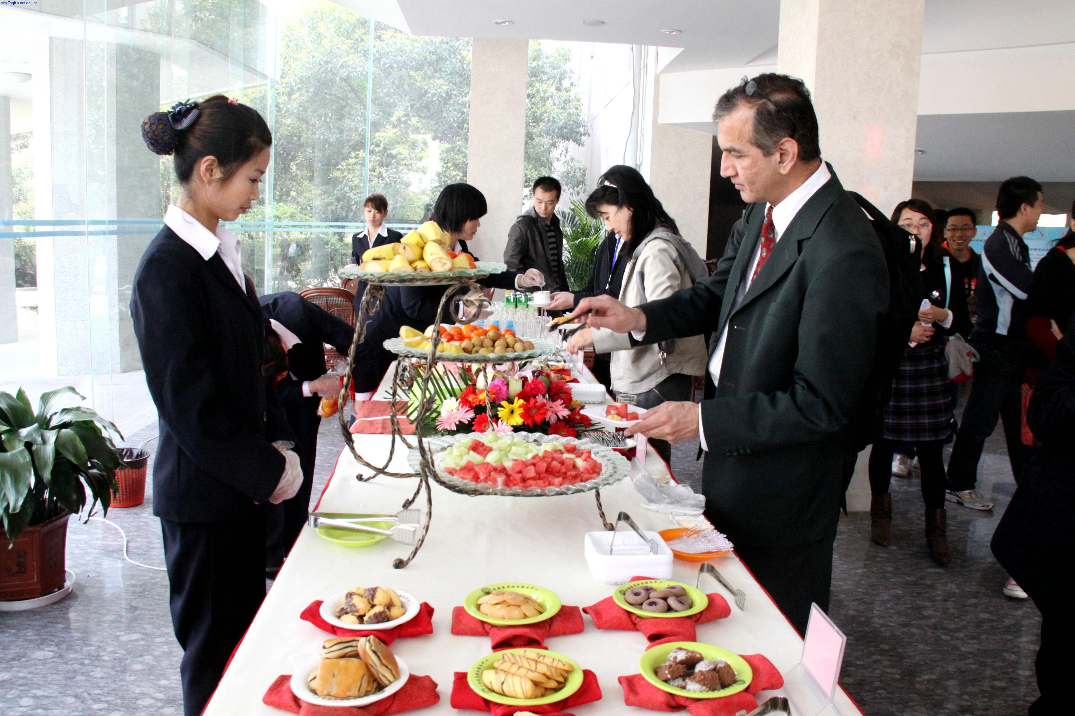 接到通知后,饮食中心南湖教师餐厅本着“高标准、求创新、产品精、铸品牌”的工作要求积极筹备茶歇服务工作,在饮食中心主任赖伟、副主任崔金福、王海波的指导下拟订茶歇品种和具体服务方案并亲临会议现场实地指导。