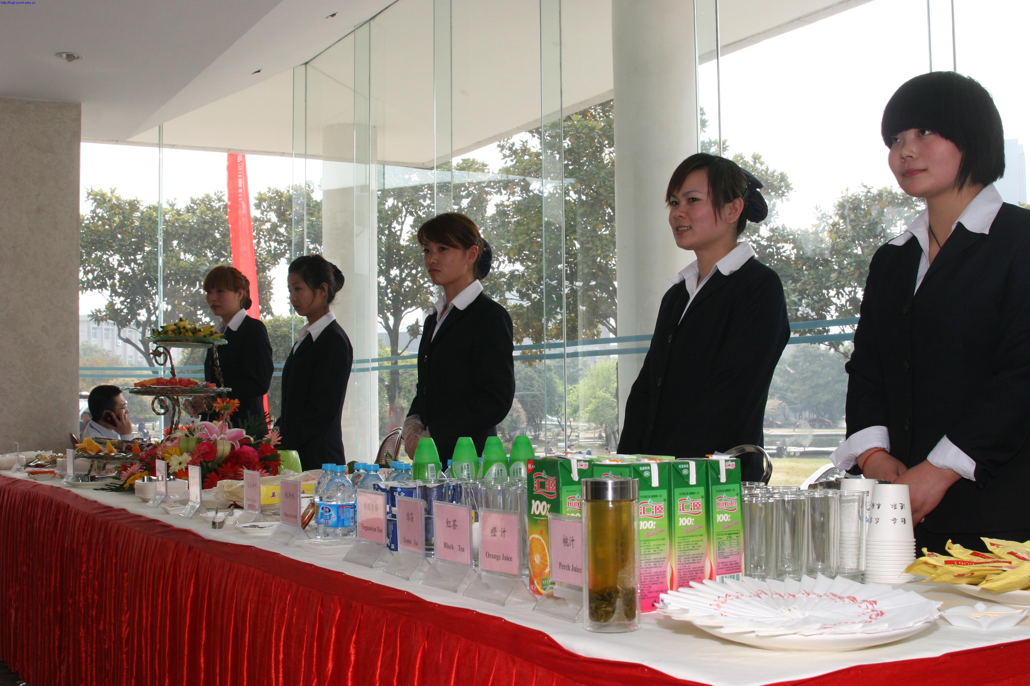 茶歇服务细节繁多,服务要求尺度把握得当和环节衔接及时,本次茶歇服务的宗旨是让与会领导时刻感觉到优质服务的同时,又不打扰与会代表的正常工作。为了“高标准”餐厅员工不惜代价、不计报酬、不辞辛劳注重细节点的打造。为了“求创新”在餐台布置上,采用了简洁明快洁白的台布和红色台裙进行装点,特别定制了鲜花和加湿喷雾设备,烘托了会议休息氛围;为了“产品精”糕点全部使用餐厅精致糕点和新鲜品牌糕点,并准备了多种饮料、咖啡和矿泉水等,较以前增加了苏打水、酸奶和多种水果。本次茶歇服务糕点22种,饮品12种,水果8种以满足与会领导的不同需求,铸就饮食中心“茶歇”品牌。